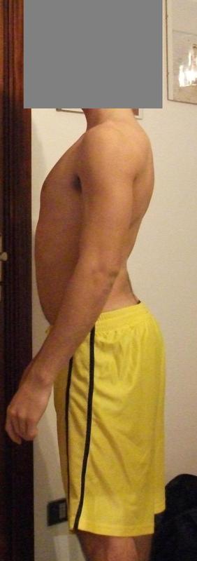 è brutto quando si indossano t shirt aderenti...Io purtroppo un pò ne ho meno di te ma ce l'ho....L' 11 dovrei andare dall'osteopata di nuovo e vediamo un pò.