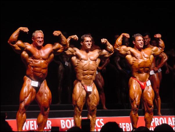 Ho trovato le foto su Musclemecca, si tratta della NOC2002, purtoppo interessandomi dei professionisti solo dal 2003 credo si fosse gia ritirato.L'atleta di cui nn so il nome è quello in mezzo a Ruhl e Cicherillo.Nella seconda foto si nota una gamba pazzesca e tagliata