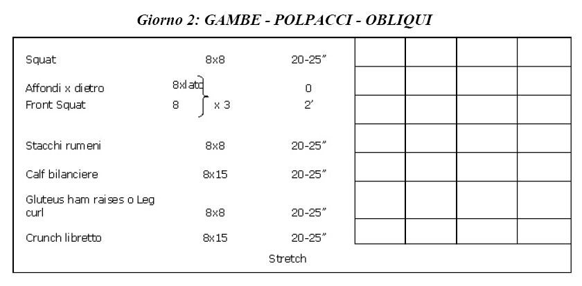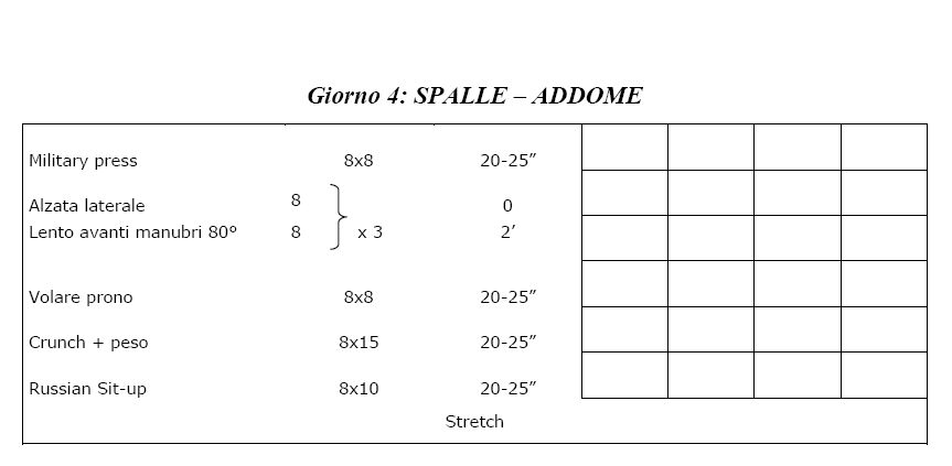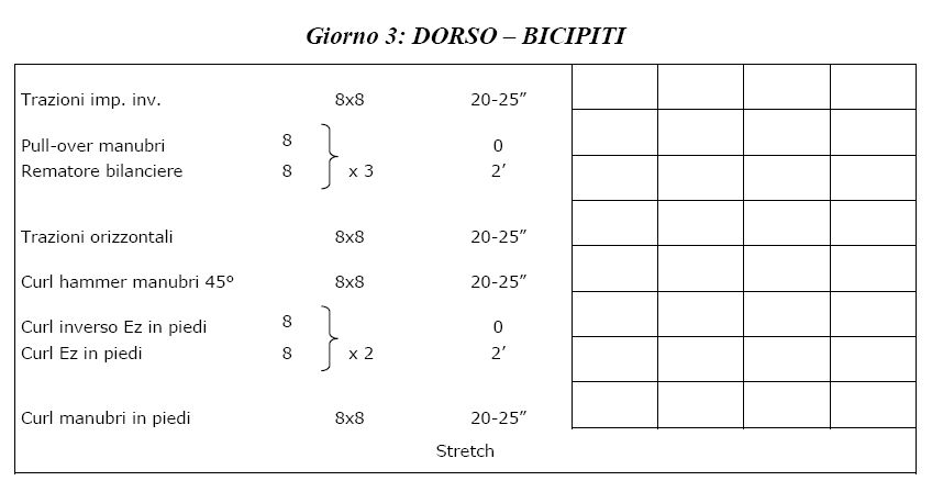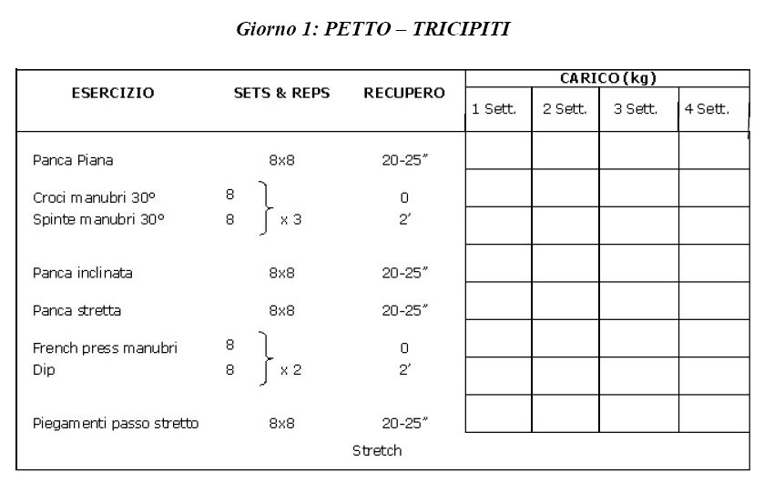 Dopo aver svolto due settimane di ricondizionamento, vorrei optare per una scheda del genere, tratta dagli allenamenti di Miletto, che in pratica non é altro che una scheda di definizione.