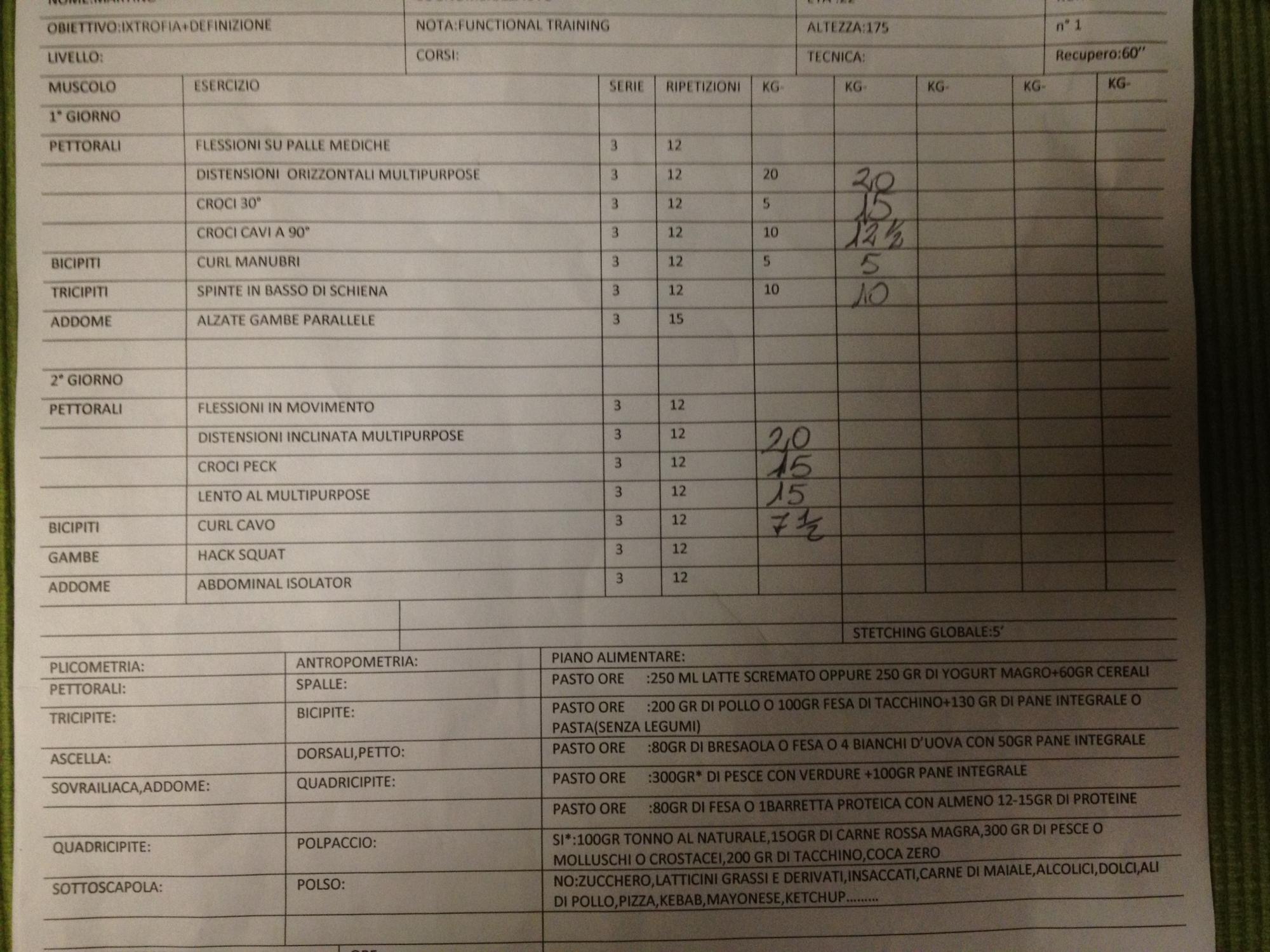 ... In palestra vado 2 volte a settimana e faccio esercizi quasi unicamente per pettorali e braccia. Mi hanno fatto questa scheda... che ne pensate?