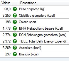 Nel tuo caso, ti consiglierei una impostazione di tipo manuale, perché in MxBody non c'è un'impostazione per stabilire se una dieta è ipocalorica o ipercalorica