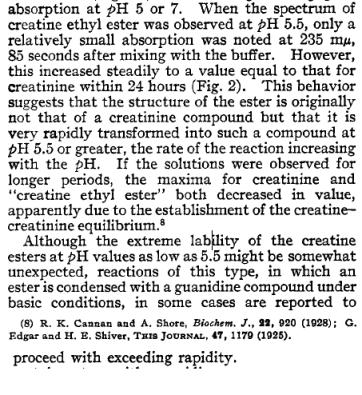 This substantially reduces creatine availability in its esterified form and as a consequence creatines such as San CM2 and CE2 are inferior to CM as a source of free creatine.