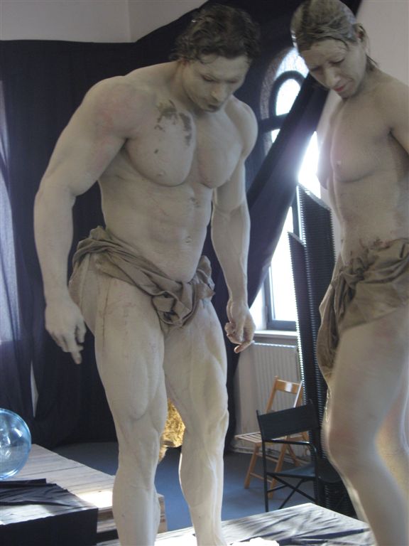 >culturisti, poseranno in una galleria d'arte contemporanea