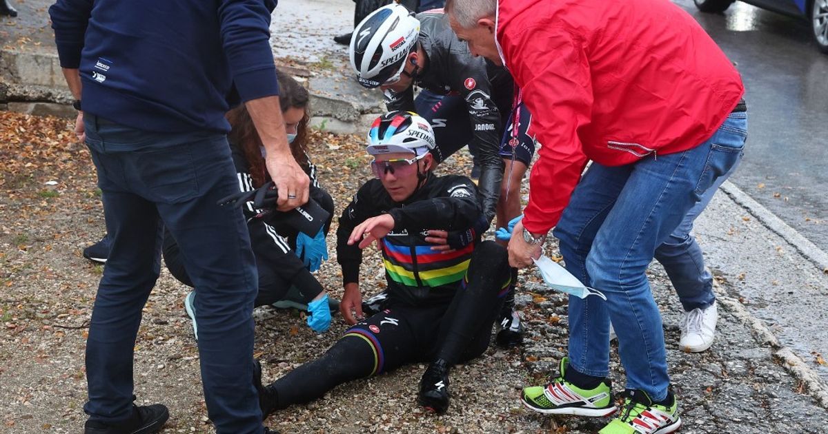 Remco Evenepoel cade al Giro d'Italia per colpa di un cagnolino
