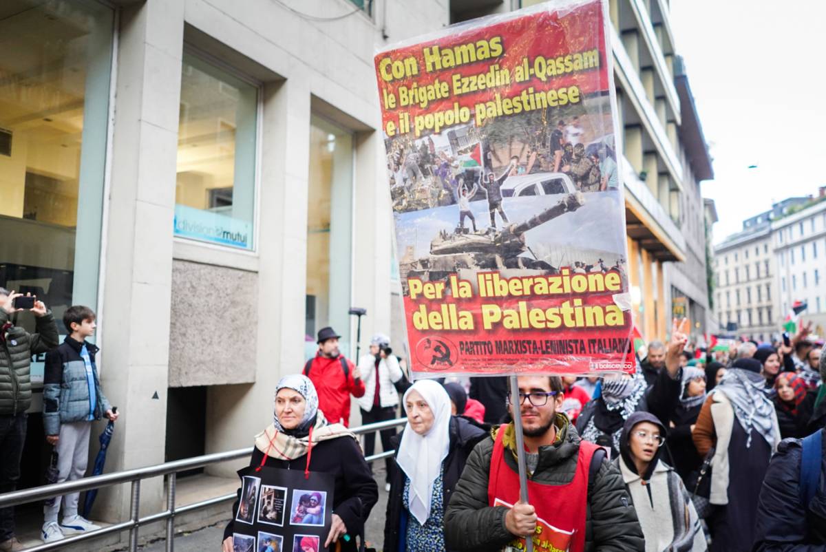 Cartelli pro Hamas al corteo di Milano. A tenerli in mano, un gruppo di tre persone italiane. Sui manifesti si legge chiaramente "Con Hamas, le brigate Ezzedin al-Qassam e il popolo palestinese". Sotto, una firma: "Partito Marxista-Leninista italiano". Avvicinati da Adnkronos, i manifestanti hanno così giustificato il loro sostegno al gruppo: "Hamas rappresenta l'unica vera resistenza per la Palestina e anti-imperialista. Ecco perché siamo con loro". Durante il corteo partito da Porta Venezia, insieme ai fumogeni che sono stati accesi durante il corteo, sono stati intonati cori choc. "Hamas è resistenza, non sono terroristi”, ha urlato una manifestante. Numerose le bandiere palestinesi e cori come "Palestina libera" o "Israele fascista, Stato terrorista". Alla manifestazione anche bandiere come quella di Sinistra Italiana, Unione Popolare e 'No Cpr'. Tra gli striscioni più vistosi, ce n'è uno che raffigura una grossa bandiera della Palestina con la scritta "restiamo umani". In apertura del corteo, invece, "Niente da festeggiare, stop war racism. Cease fire now".